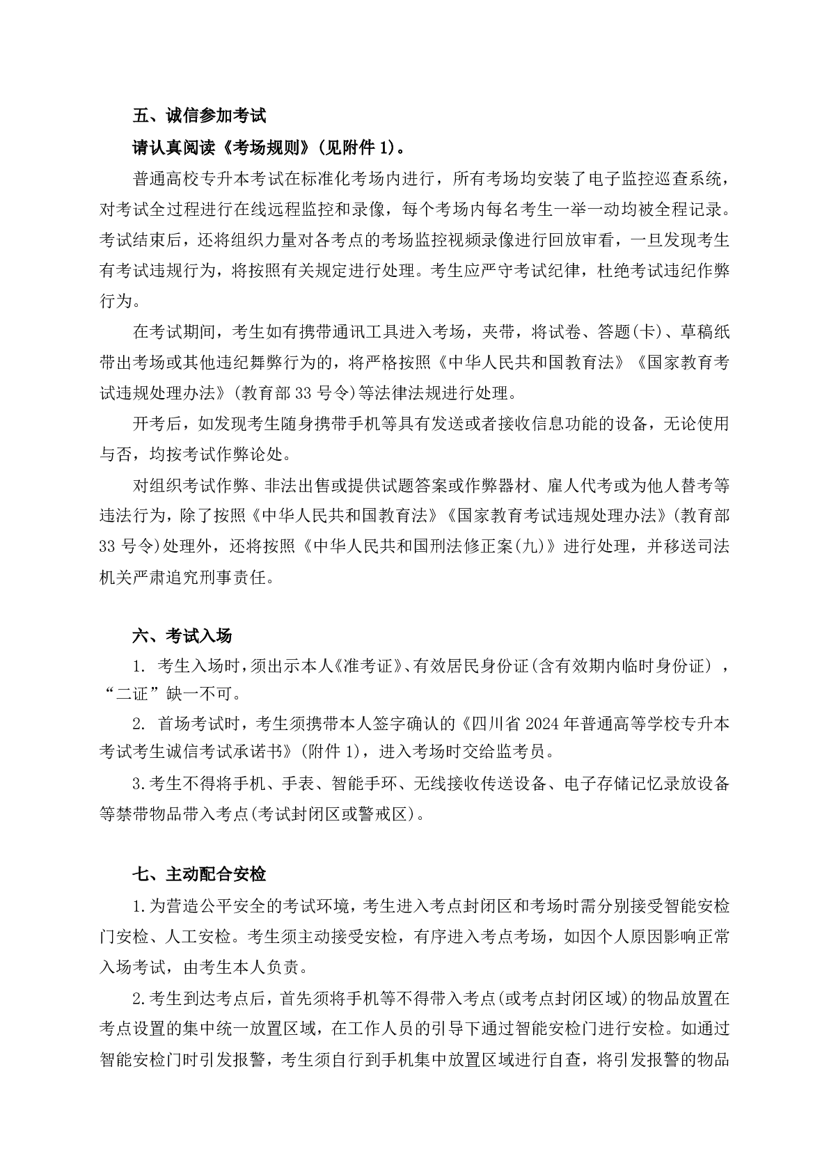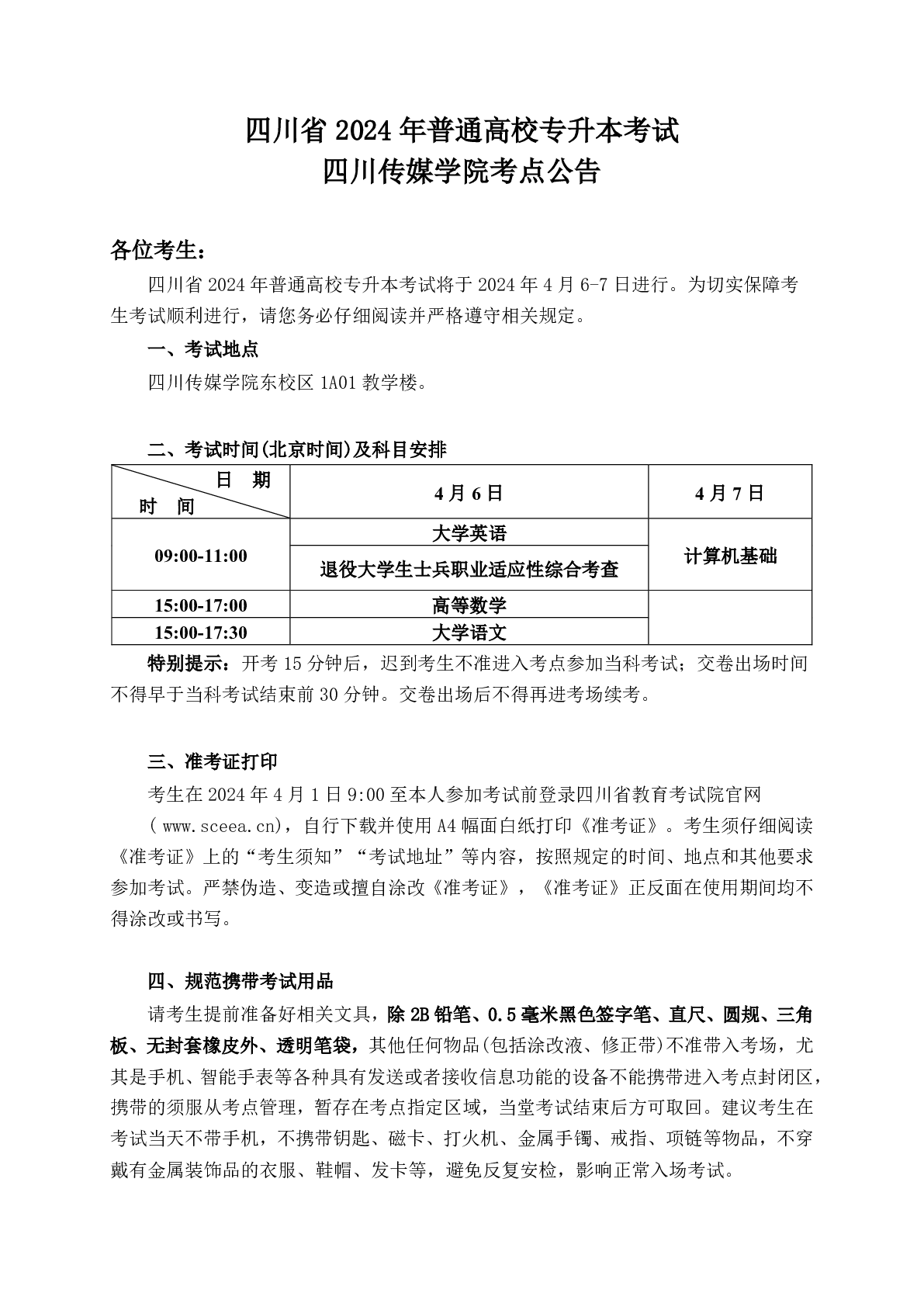 2024年普通高等学校专升本考试四川传媒学院考点公告