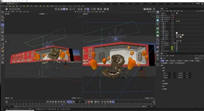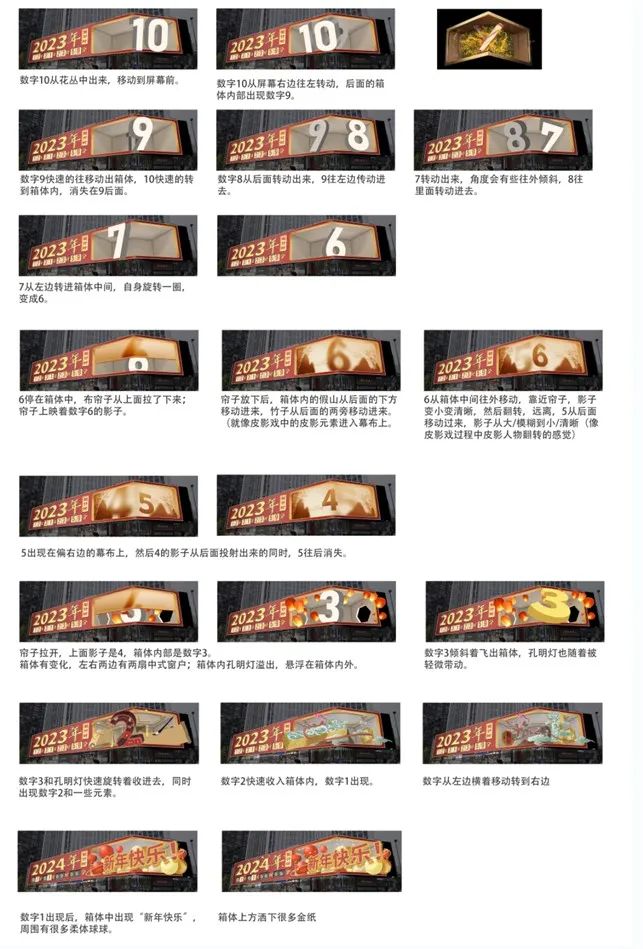 倒计时的重点和难点是如何形式多样的突显每个数字的出屏效果。我们观摩了大量的裸眼3D视频,总结出一些裸眼3D的表现形式,运用于场景搭建和动画调节。调整动画时,由于对运动规律的理解不深入,动画部分出现很多问题,万晋杉老师和詹平老师总是耐心地告诉我们问题出在哪里,该如何去解决。项目从主题策划,分镜绘制,模型制作,动画调整,后期合成,都凝聚了师生的认真和付出。