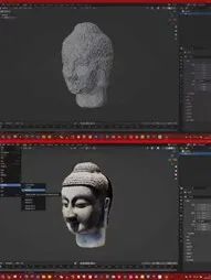 我是一名川传学生,也是河南省非遗“祥营狮鼓”的一位传承人。家乡民俗文化深深影响了我。我选取了“巴蜀图语”铜印和成都万佛寺南北朝石刻佛像这两件文物作为数字化处理的对象。在创作中,为了追求精细真实地展现文物的纹理细节,我投入了大量时间学习3D美术方面的知识,最终决定通过数字人面部制作技术,重新雕刻和拓扑石刻佛像的数字模型。为此,我学习了虚拟制片,摸索出了一套自己的数字动画制作流程,体会了数字技术与物质文化遗产的交融之美。