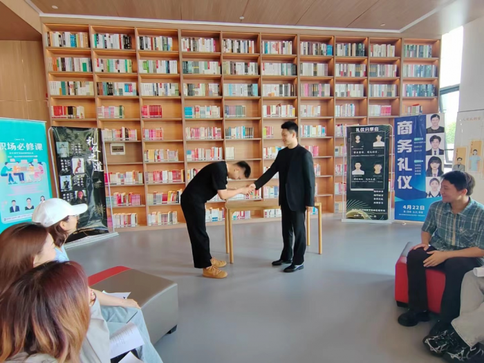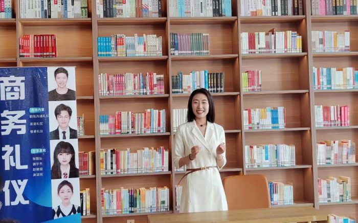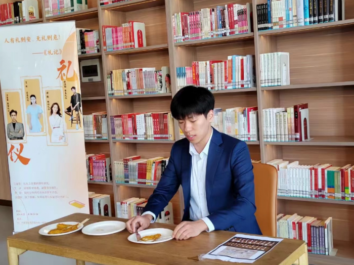 近日,有声语言艺术学院有声语言社会应用方向成功举办了“礼仪之道”分享会。该活动以《有声语言教育实践》课程为依托,聚焦中华礼仪文化,由赵珊珊、肖玉婷和刘力韬三位老师联合策划,旨在提升学生的专业素养,深化对传承中华礼仪之韵的理解与实践。商业礼仪、职场礼仪、餐桌礼仪…多场别出心裁的分享,学生在情景演绎中将所学知识融入其中。从场景布置到情景演绎,从知识讲解到问答互动,这场由学生为主导的分享会,在四川传媒学院图书馆落下圆满帷幕。对标媒体行业发展,播音主持专业教学被赋予了更高的要求。作为有声语言艺术学院的实践探索,此次分享会不同于传统实践课程模式,而是打造了沉浸式教学场景,通过模拟真实礼仪社交情境,让学生在情景演绎中深刻理解并运用有声语言艺术。一直以来,在以学生为中心的教育理念推动下,有声语言艺术学院持续积极探索有声语言的实践课堂新模式。《有声语言教育实践》分享会以知识嵌入式的场景模拟,打造互动化、沉浸式、情景式的深度体验模式,在学生实践中,推动了知识与能力互融,构建立体化的有声语言教学模式。