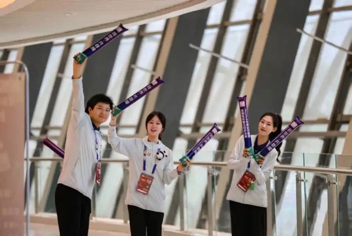 “每次观众进入场馆内,我总想把发自内心的笑容带给他们,用普通话和温暖的声音与观众交流。”参与观众服务的贵博雅同学说道。她和同学们用专业的服务态度,为观众提供了周到的咨询和引导,让观众在享受比赛的同时,也感受到了成都的热情与贴心。