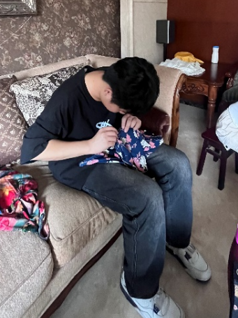 视障奶奶年迈体弱,视力受限,生活中诸多不便。当她发现自己心爱的衣物破损时,内心充满了无奈与不舍,志愿者同学利用针线开始进行修补,低头专注地穿针引线,时而抬头与奶奶交流,询问她的意见和感受;当老人需要办理银行卡时,面对复杂的流程和陌生的环境,他们感到十分困惑和无助,志愿者带领他们前往银行,全程帮助与陪伴完成了各项手续。