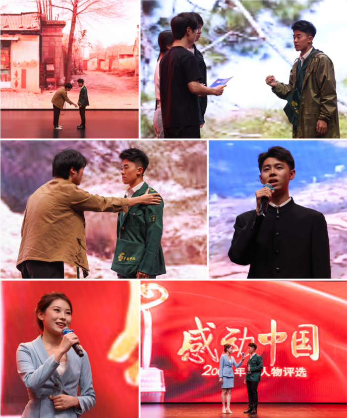 双语播音方向胡梓阳同学,在现场展示了《大渡桥横铁索寒,红军飞夺泸定桥(“With Cold Iron-chain Bridge River Dadu is Spanned”-the Triumphant Seizure of Luding Bridge)》党史英文作品诵读。该项作品指导教师孙雨竹,获本次大赛英文组特等奖。郭铭轩、茹嘉兴两位同学,现场表演了特等奖作品《马班邮路的忠诚信使王顺友》,该项作品指导贾王媛、王小云,获本次大赛中文组特等奖。