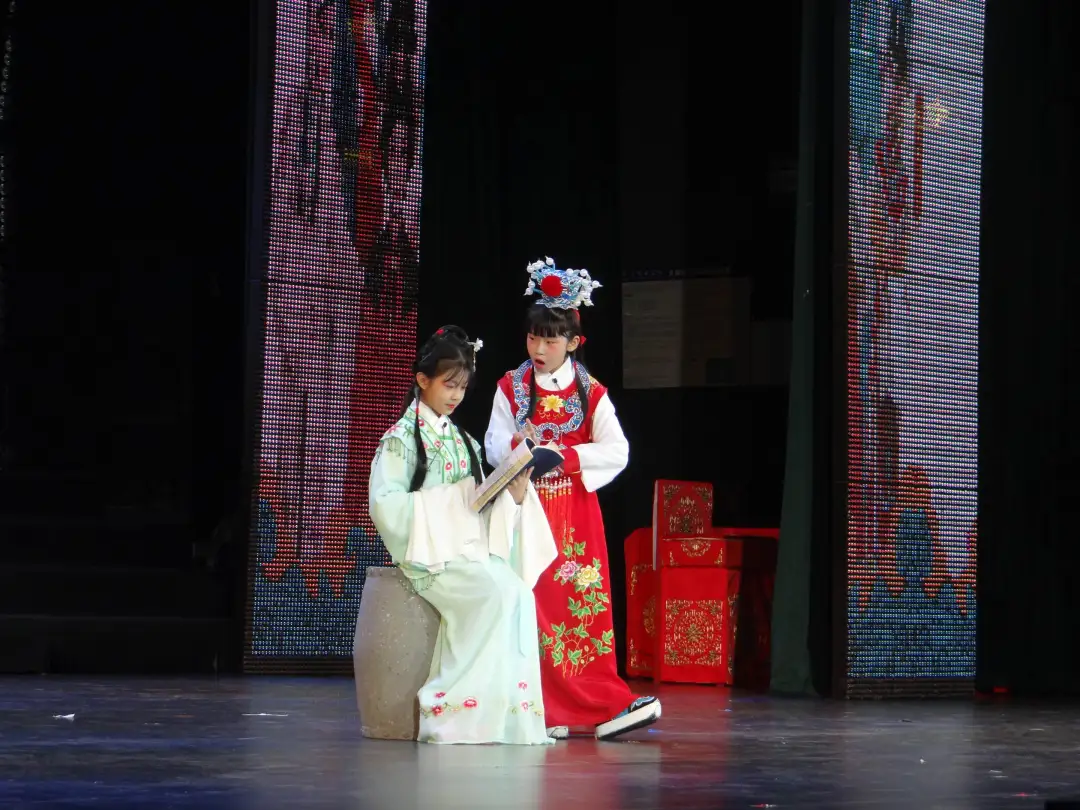 首秀登场,两位小演员演绎了《红楼梦》之“读西厢”选段,细腻勾勒了宝玉和黛玉在封建礼教束缚年代的悲惨爱恋。他们身为贵族血脉,却勇于挣脱宿命桎梏,借共赏《西厢记》之契机,互诉衷肠,彰显纯真爱恋与不屈意志。小演员们的深情演绎,赢得了在场观众的满堂喝彩。