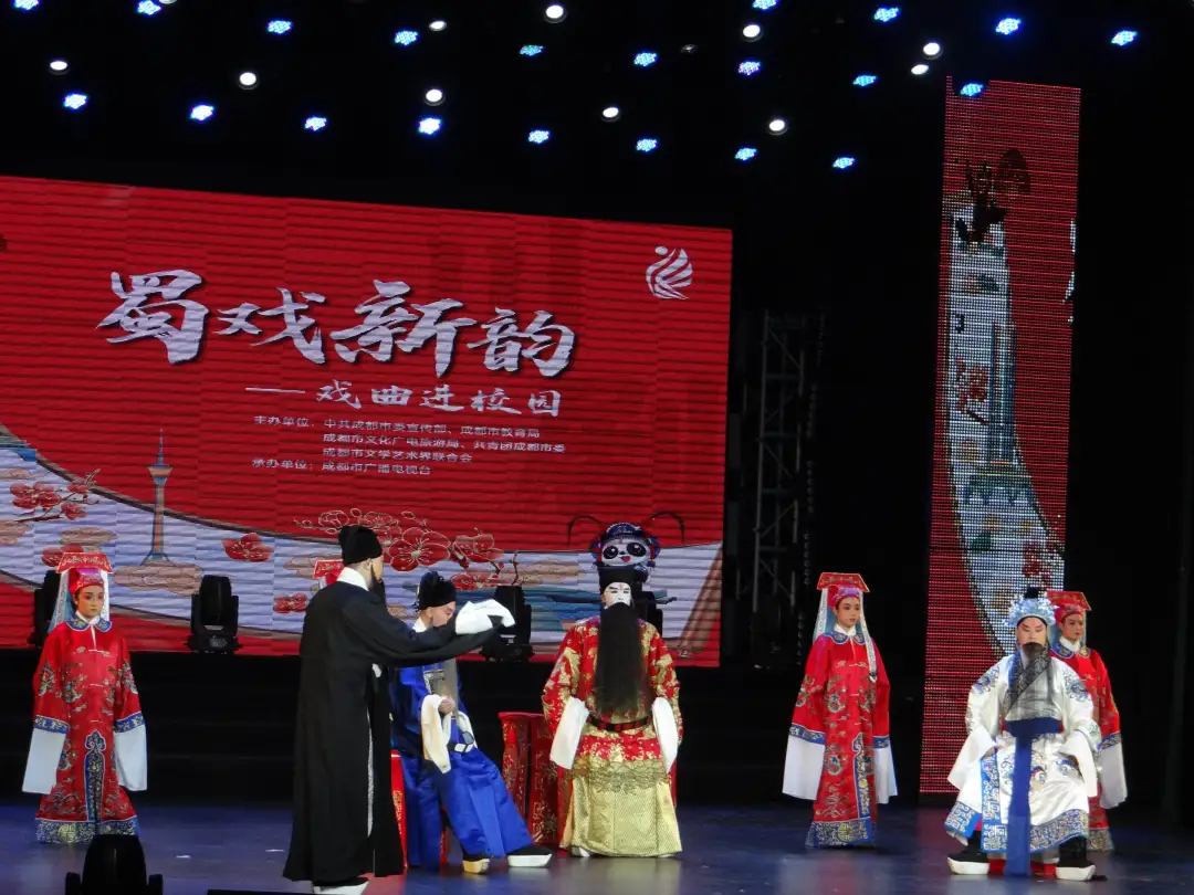 为颂扬中华传统文化之美,点缀校园文化的斑斓画卷,10月29日晚,“蜀戏新韵”戏曲进校园活动于大型演播厅盛情呈现。活动吸引了众多师生热情参与,现场氛围热烈。本次活动秉承“思想性、艺术性、教育性、欣赏性”相结合的原则,旨为师生搭建平台,领略传统戏曲的艺术魅力。