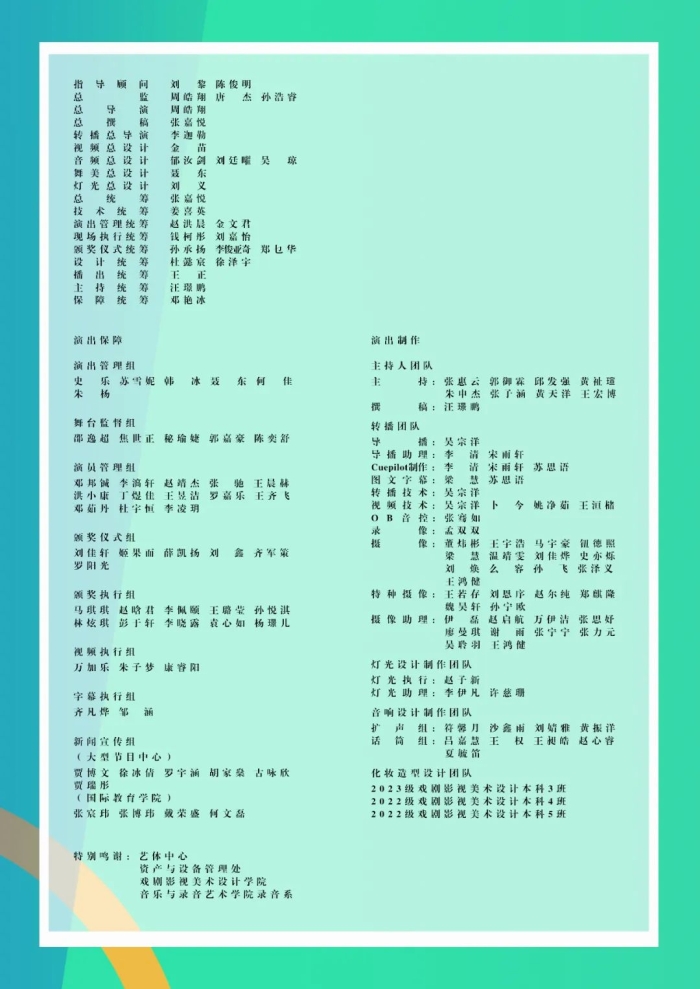 活动本身为学生提供大量“摄录演、采编播、服化道、音美照”等专业相关的实践岗位,是丰富且有效的第二课堂实践平台。同时,展演环节也实现了美育浸润的效果。