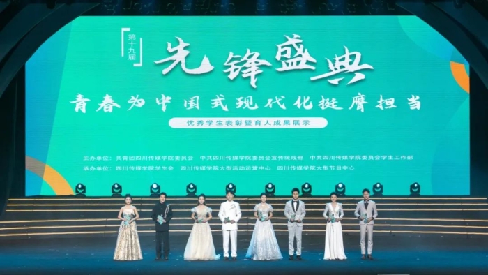 先锋盛典——优秀学生表彰暨育人成果展示活动(以下简称“先锋盛典”)作为四川传媒学院“校级校办”品牌校园文化活动,深度融入“大思政”工作体系,坚持在“三全育人”工作格局中发挥重要作用,突出“五育并举”,集思想政治引领、优秀学生表彰、育人成果展示为一体,以朋辈榜样示范为主要方式。表彰内容涵盖学生校园文化的各个领域,体现组织育人、文化育人、实践育人、网络育人的成果,全面展示校园文化,展现学生精神风貌,促进良好学风建设。