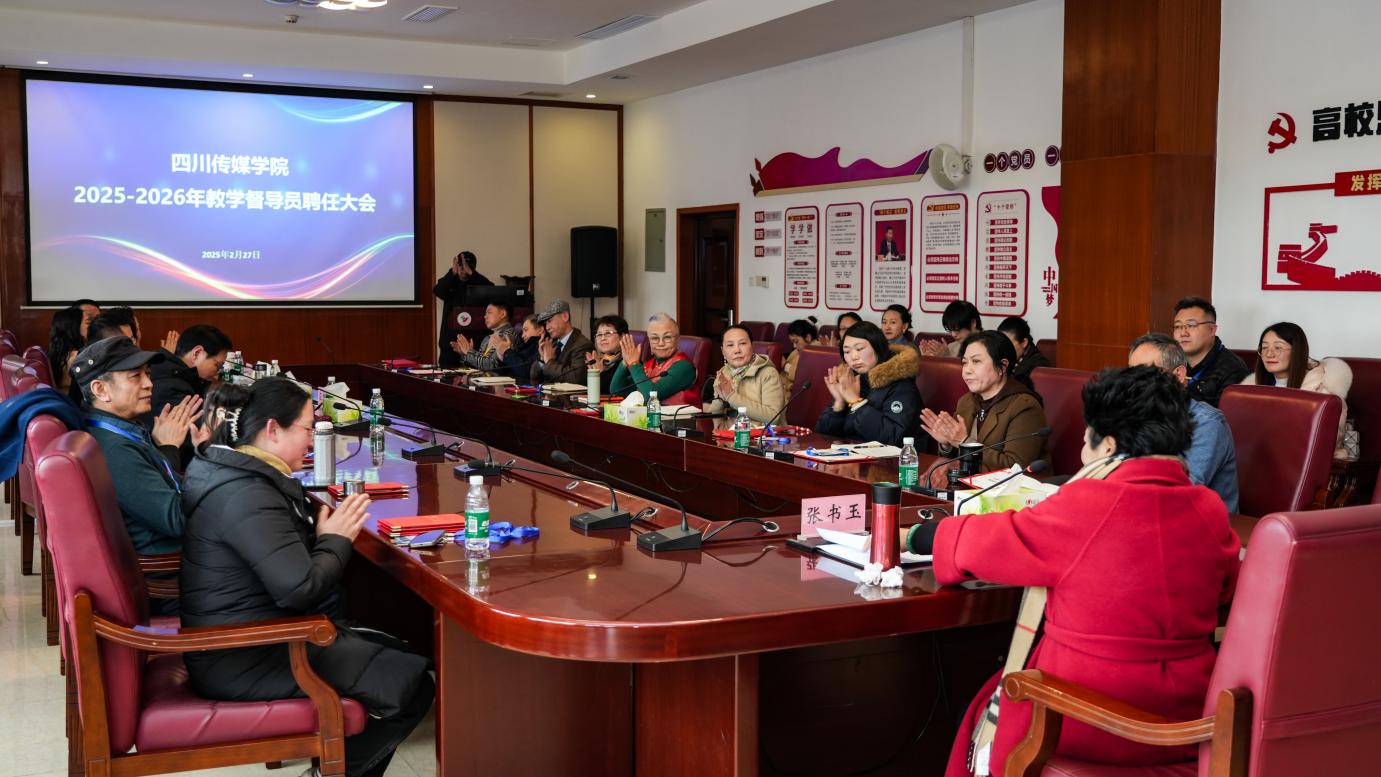 2月27日14:30,学校2025-2026年教学督导员聘任大会在第一行政办公楼504会议室召开。会议由评督处邓斌处长主持,张书玉理事长,左旭舟校长,任迎虹副校长、总督学出席会议,教务处、人事处(教师发展中心)负责人及评督处全体人员、新一届教学督导参加了聘任大会。