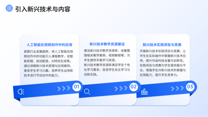提出构建"审美培养+AI创作"双螺旋体系:打造"课前导学-课中研讨-课后创作"混合式教学体系,将AI生成内容创作前置至低年级课程,建立可视化创作能力成长模型。