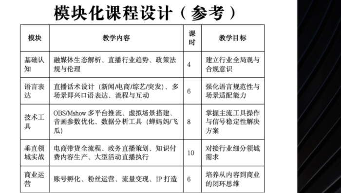 打造“三维立体实训矩阵”:融合政务直播、产业传播、大型活动执行三大场景,构建“策划-执行-传播-复盘”全链路培养体系,突破传统播音主持教学边界。