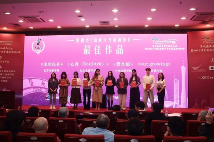 近日,由中国电影电视技术学会与暨南大学联合主办的中国电影电视技术学会年度荣誉榜单第十届“声音学院作品交流”暨2025年全国高校声音专业教学交流活动在广州暨南大学成功举办。四川传媒学院录音系在本届活动报送作品14部,最终荣获6项奖项,其中1项“最佳作品奖”、5项“入围作品奖”。同时,四川传媒学院四位教师荣获“优秀指导教师”称号,学校亦获颁“优秀组织院校奖”。
