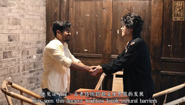 视频创作绝非易事。如何让不懂中国传统文化的外国观众也能看懂并爱上这门古老技艺?团队给出了答案:用特写镜头捕捉指尖的精妙手法,用沉浸式画面还原市井的鲜活氛围,直观展现古彩戏法不依赖复杂机关,而全靠千锤百炼的真功夫与坦诚相待的中国气度。这种“求同以共鸣、显异以吸睛”的传播策略,让根植于生活的匠人精神,成为了连通中外观众的情感纽带。