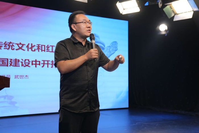 武世杰以《弘扬中华优秀传统文化与红色文化:在文化强国建设征途中的奋力开拓》为题,深刻阐述了文化自信作为国家发展之基的重要性。他援引党的二十届三中全会之精神,指出增强文化自信、繁荣社会主义先进文化,是引领我们阔步前行的明灯。