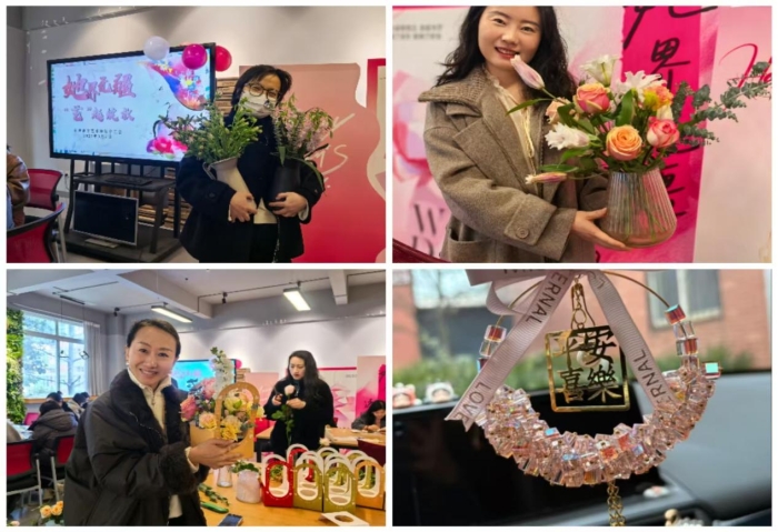 分工会主席安君同志致开幕词,向全体女教师表达了节日的问候与诚挚的祝福,感谢她们在教学、科研和学院建设中所付出的辛勤努力。她简单介绍了本次主题活动项目,其项目丰富多彩,涵盖了插花艺术、车挂手作和传统“非遗”工艺体验等多个艺术形式。