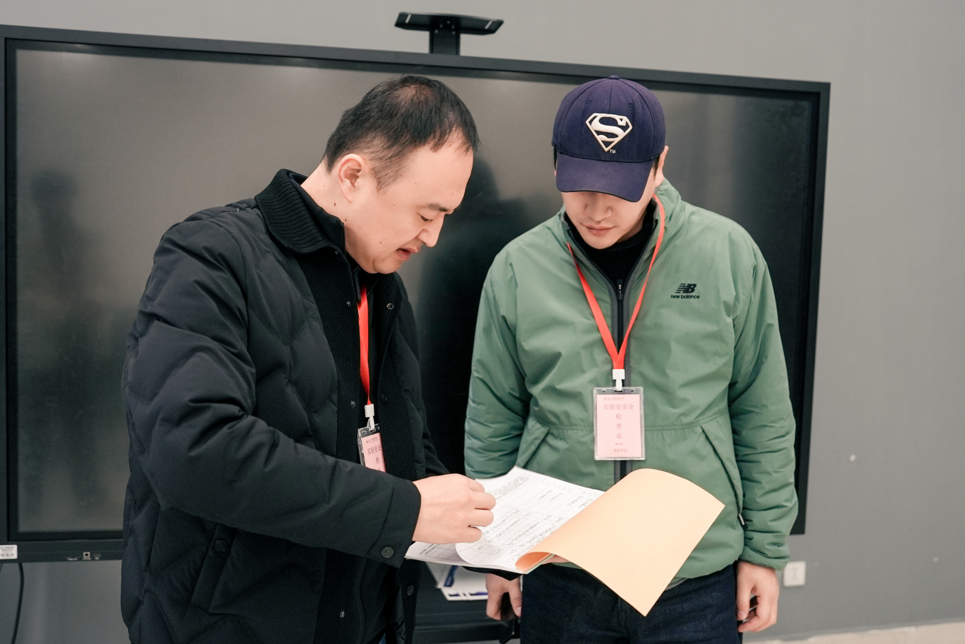 为深入贯彻“安全第一、预防为主”的工作方针,全面排查安全隐患,保障期末及假期期间校园安全稳定,2025年12月19日上午,智能影像艺术学院组织开展了一次覆盖全院范围的期末安全大检查。本次检查由学院副院长、实验实训中心主任帅国庆亲自带队,中心副主任何仁伟、张琳浩,各实验室主任及全体实验员共同参与。