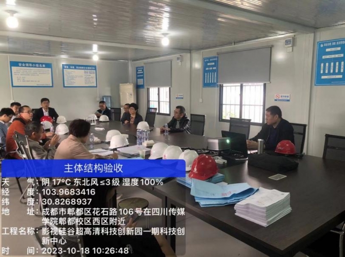 成都影视硅谷超高清科技创新园一期科技创新中心主体验收通过10月18日上午,成都影视硅谷超高清科技创新园一期科技创新中心项目由建设单位、施工单位、设计单位、监理单位、勘察单位、郫都区质量监督站等组成的验收小组对主体部分进行了验收检查,经过细致