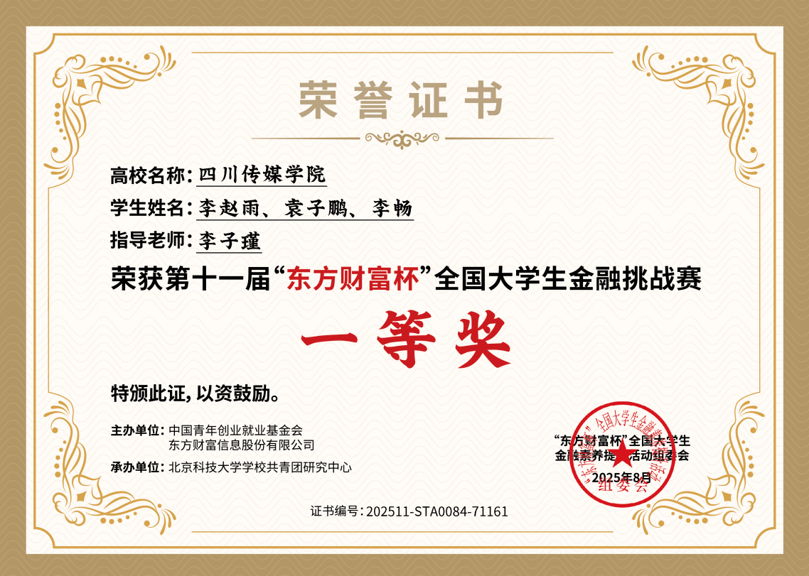 第十一届“东方财富杯”全国大学生金融挑战赛圆满落幕,我院学子凭借扎实的专业功底、敏锐的市场洞察力与默契的团队协作,在激烈角逐中脱颖而出,共斩获2项国家级奖项、12项省级奖项,其中全国一等奖1项、全国二等奖1项,省赛一等奖2项、省赛二等奖7项、省赛三等奖3项,用亮眼成绩彰显了我院经管类专业人才培养的丰硕成果。