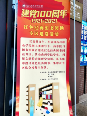 5月22日是个普通的周末,然而对于眉山药科职业学院的学生们来说又是一个不普通的日子,因为就在这个周末,由学院图工委、药学院、图书馆联合主办的“迎建党100周年红色经典图书阅读专区建设活动”正式启动,同学们利用休息时间,利用文献检索课所学知识,从书库中搜寻红色经典图书,集中在专区展示,供全校师生阅读。