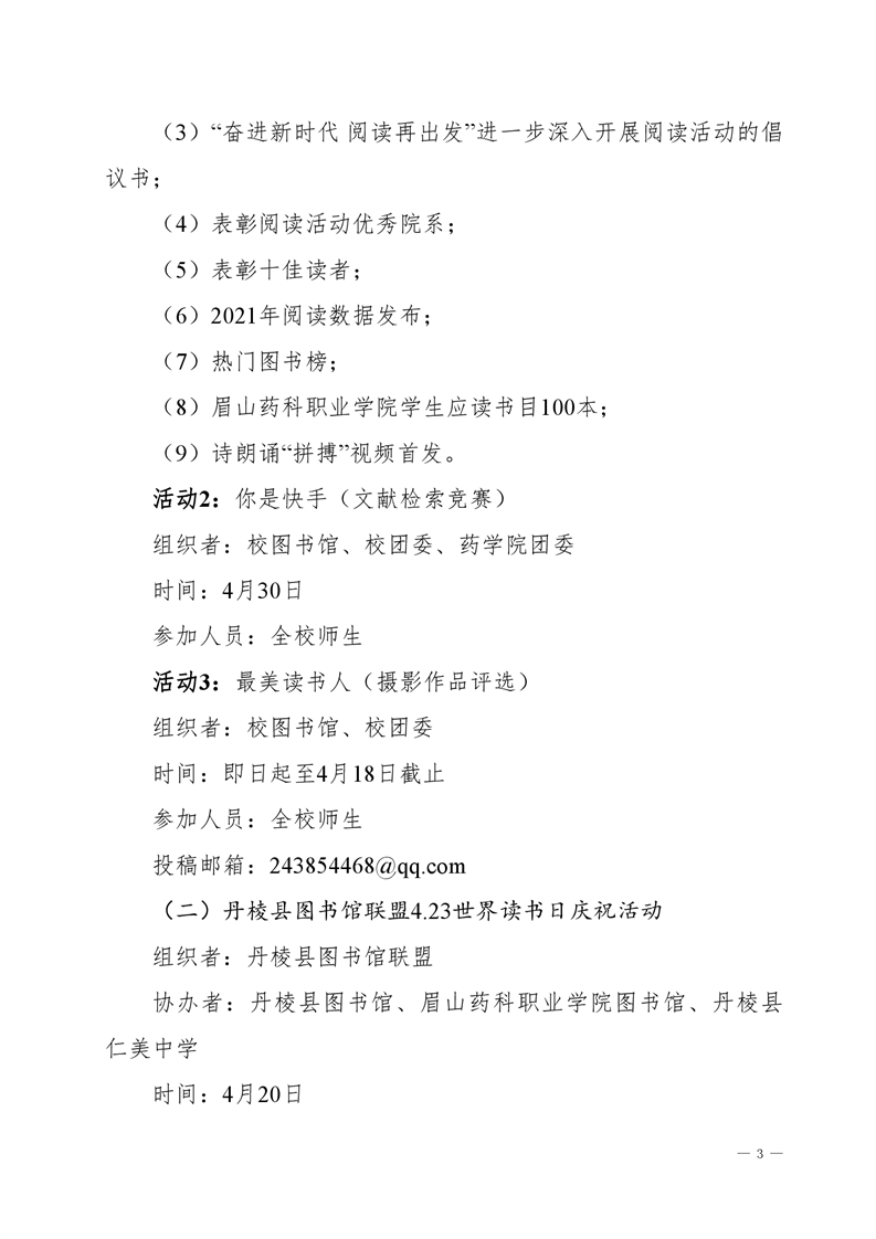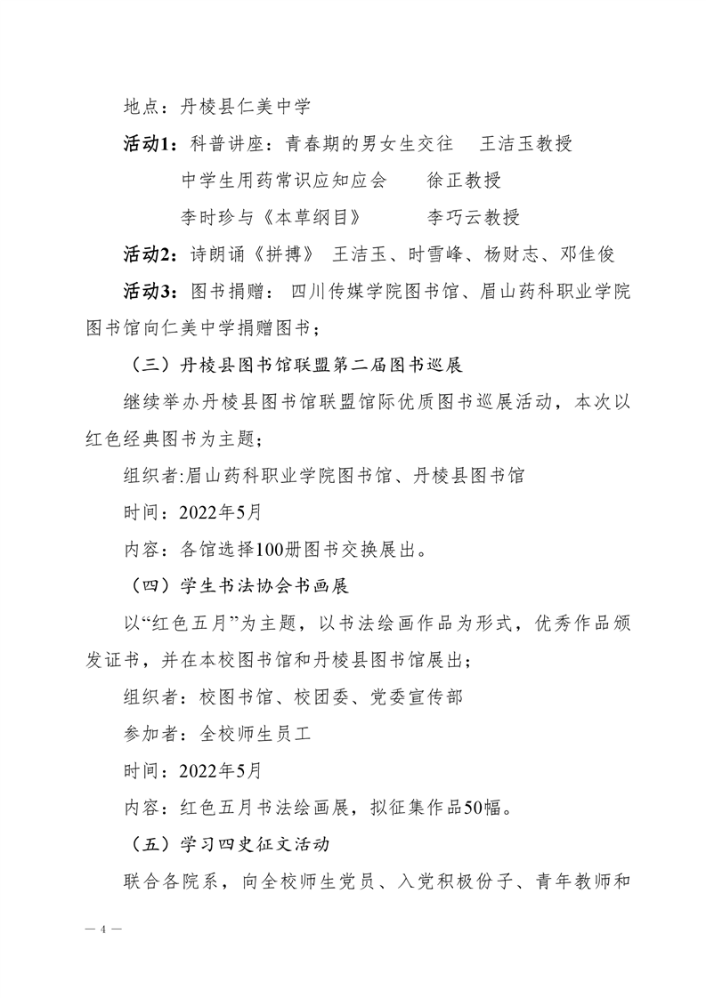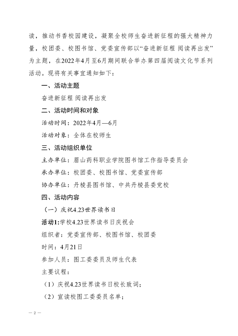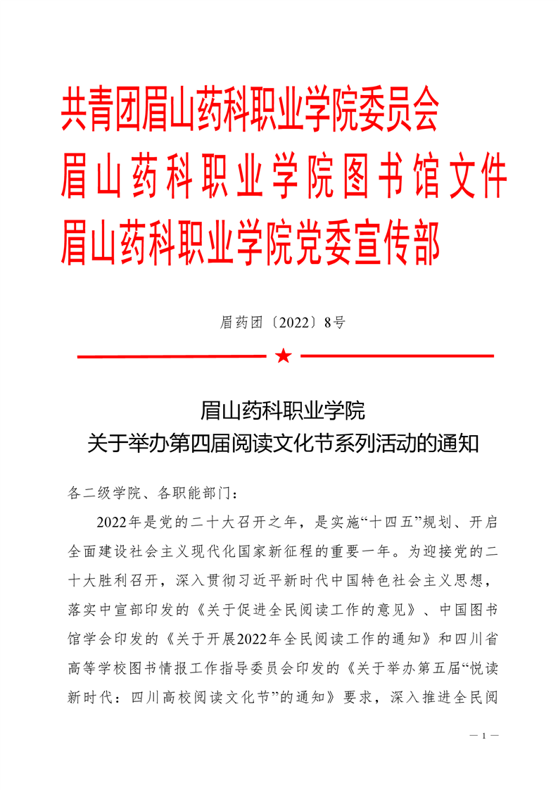 眉山药科职业学院关于举办第四届阅读文化节系列活动的通知