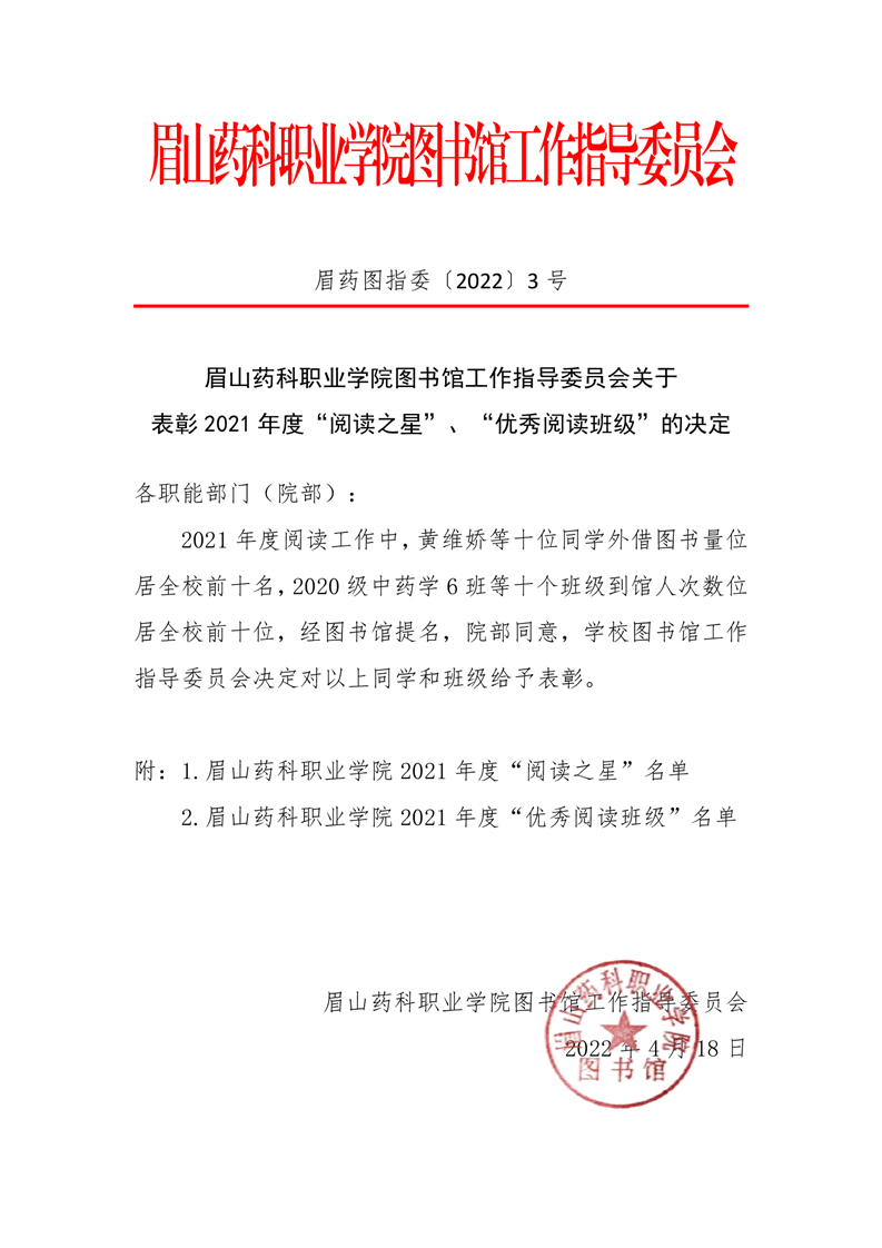 表彰2021年度“阅读之星”、“优秀阅读班级”的决定