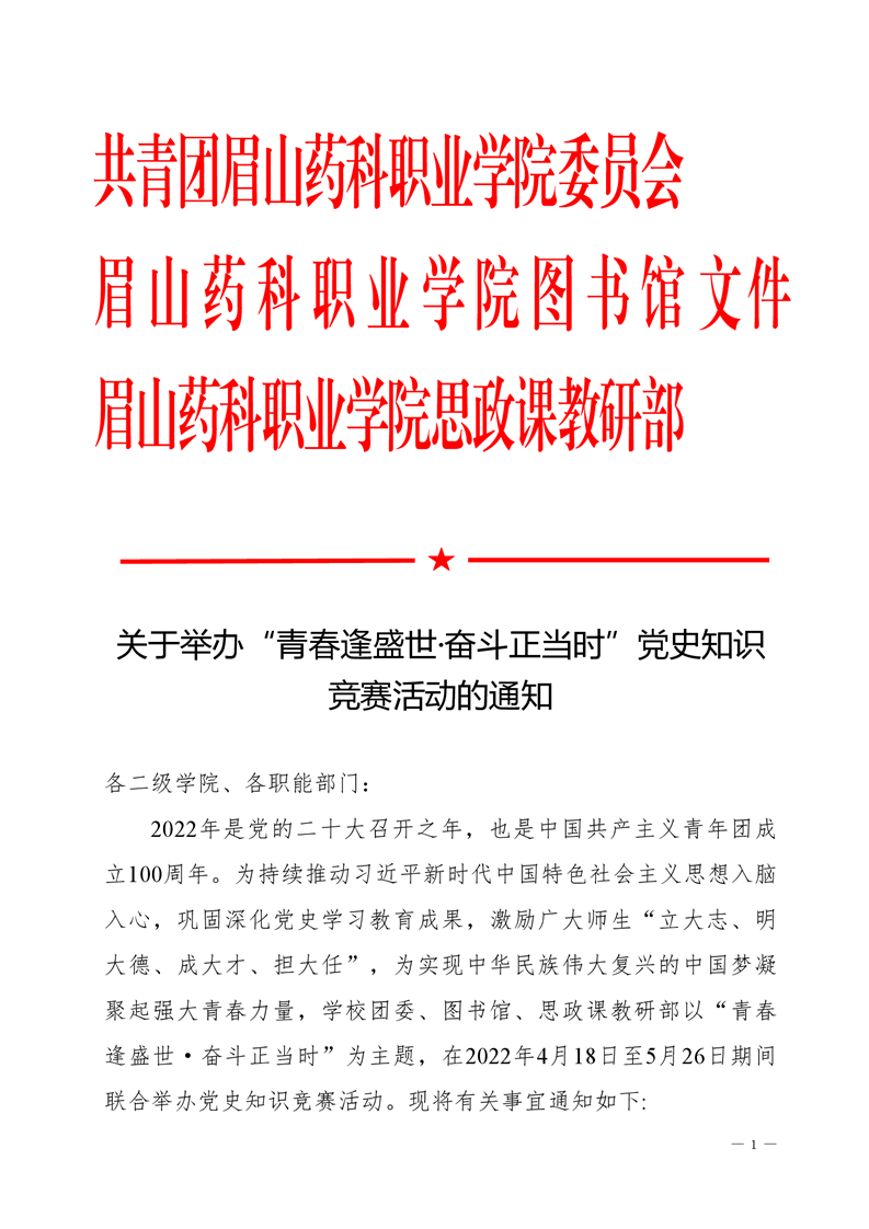 关于举办“青春逢盛世·奋斗正当时”党史知识 竞赛活动的通知