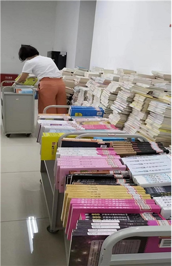 今年暑假格外炎热,但酷热的天气并没有阻挡图书馆的所有工作人员,他们利用暑假全面推进藏书建设工作,以崭新的面貌迎接新学期的到来。在学院的大力支持下,图书馆加大文献资源的采购力度,上半年新购入7.5万册、389.4万码洋的图书,数字资源方面新增电子图书40万册,总量达140多万册。为了让新购入的7.5万册图书尽快上架,图书馆全体工作人员暑假期间加班加点,全力奋战,与时间赛跑,在完成常规工作的前提下,仅用一个月时间就完成了7.5万册图书验收工作,整个暑假共计上架图书42.7万册。
