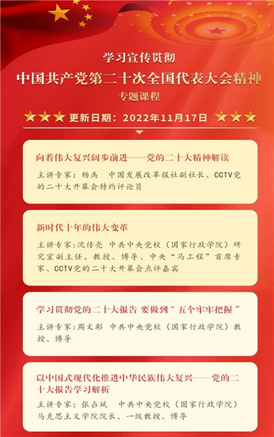 红色讲堂《学习宣传贯彻中国共产党第二十次全国代表大会精神》专题课程正式上线!